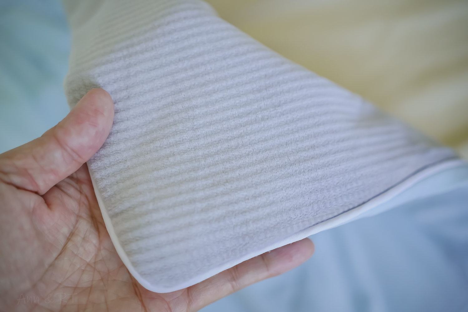 御菱絲皇家御用被的四個角落都有 貼心的跳色設計,在裝被單時一眼就能快速找到位置,對準角落使用起來更方便!很實用的小細節~